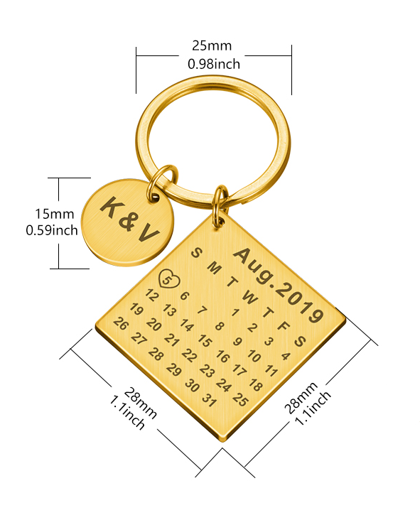 Calendar Keychain Customized With Initial Letter Of The Name for couples, lovers, weddings, and relationships. Carry the love of your life with you everywhere. Now, with the personalized keychain, you can always carry a souvenir of the one you love wherever you go.