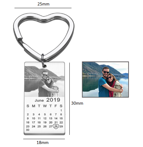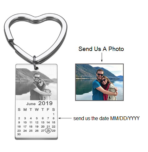 Customized Date And Photo Calendar Keychain for couples, lovers, weddings, and relationships. Carry the love of your life with you everywhere. Now, with the personalized keychain, you can always carry a souvenir of the one you love wherever you go. We customize any photo.