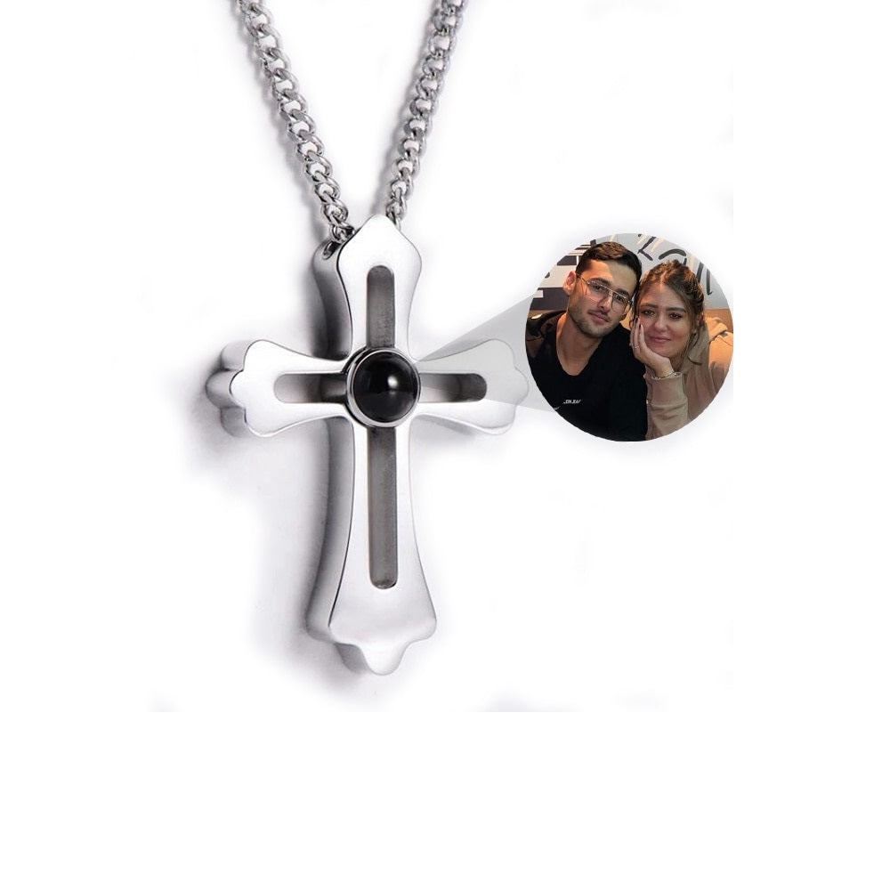 Customized Infinity Cross Photo Necklace for individuals (father, mother, children, boyfriend/girlfriend, husband, wife, grandparents, grandchildren, families, among others), dogs, cats and other animals. Carry the loves of your life with you wherever you go. Now, with the personalized necklace, you can always take those you love wherever you want. We customize any photo of people, pets and animals in general.